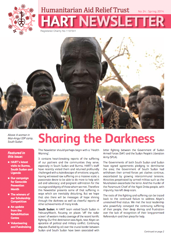 – An update on the continuing conflict and growing humanitarian crisis in South Sudan, where over a million people have been displaced since December 2013. On a recent visit the HART team met some of those affected by the violence and the lack of humanitarian assistance; here we present some of their stories.
